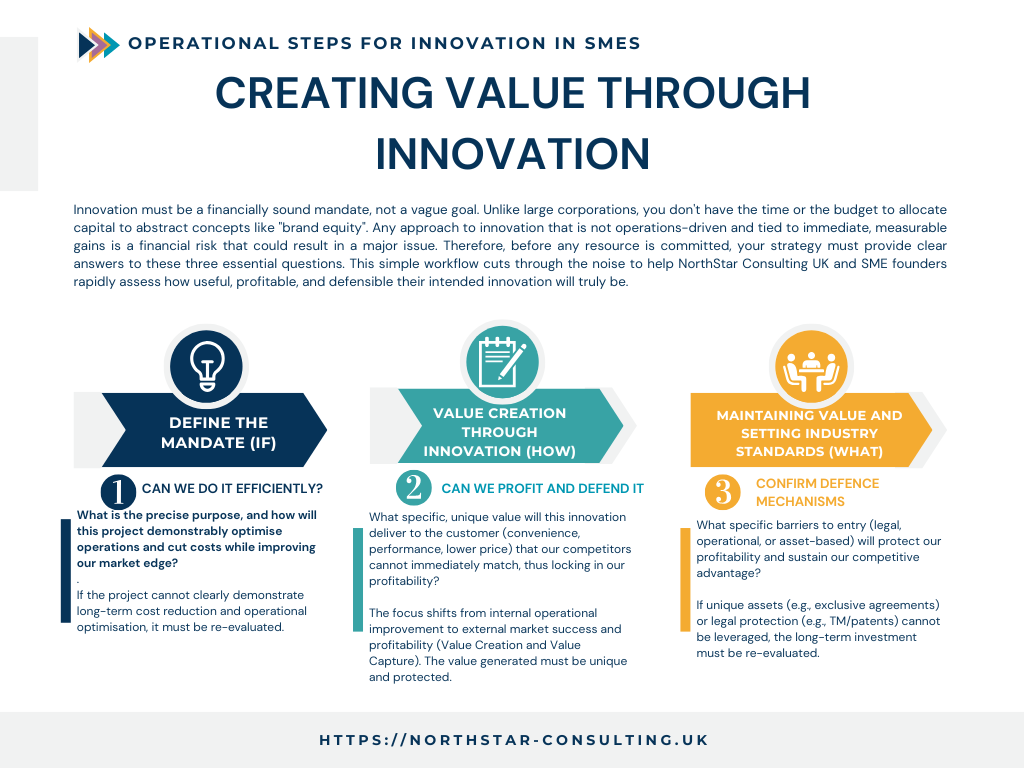 We call this framework the 3 Operational Steps for Innovation in SMEs—a direct workflow to ensure your projects are useful, profitable, and defensible.